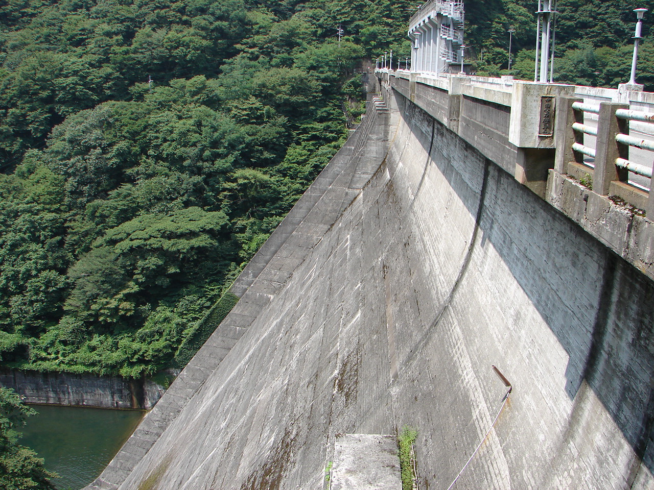 ![]() 湯原ダム 昭和27年2月着工、昭和30年3月竣工。堤頂長194.37m、堤高73.5m。 |