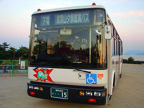 (左)JR児島駅発着で鷲羽山夕景鑑賞バスが運行されている。