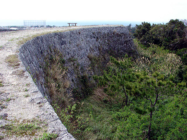 座喜味城は、戦時中は日本軍の砲台となり、戦後は米軍のレーダー基地として使用された。返還後史跡整備されて現在に至る。