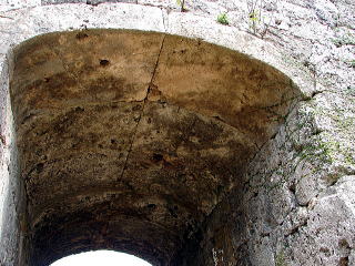 アーチ門前面の上部、左右の石と石の真中にはクサビ石が打ち込まれて頑丈に出来ている。
