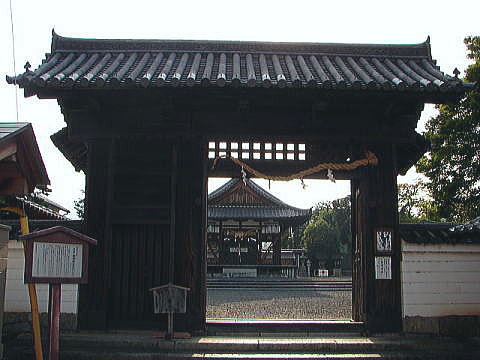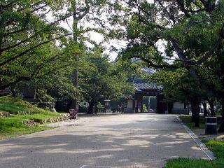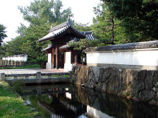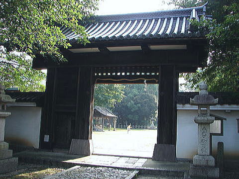 高麗門という形式は、背面に特色があって正面の主体部から両方に袖のように直角に屋根が出ているものをいい、この形式は城門にも多く用いられている。